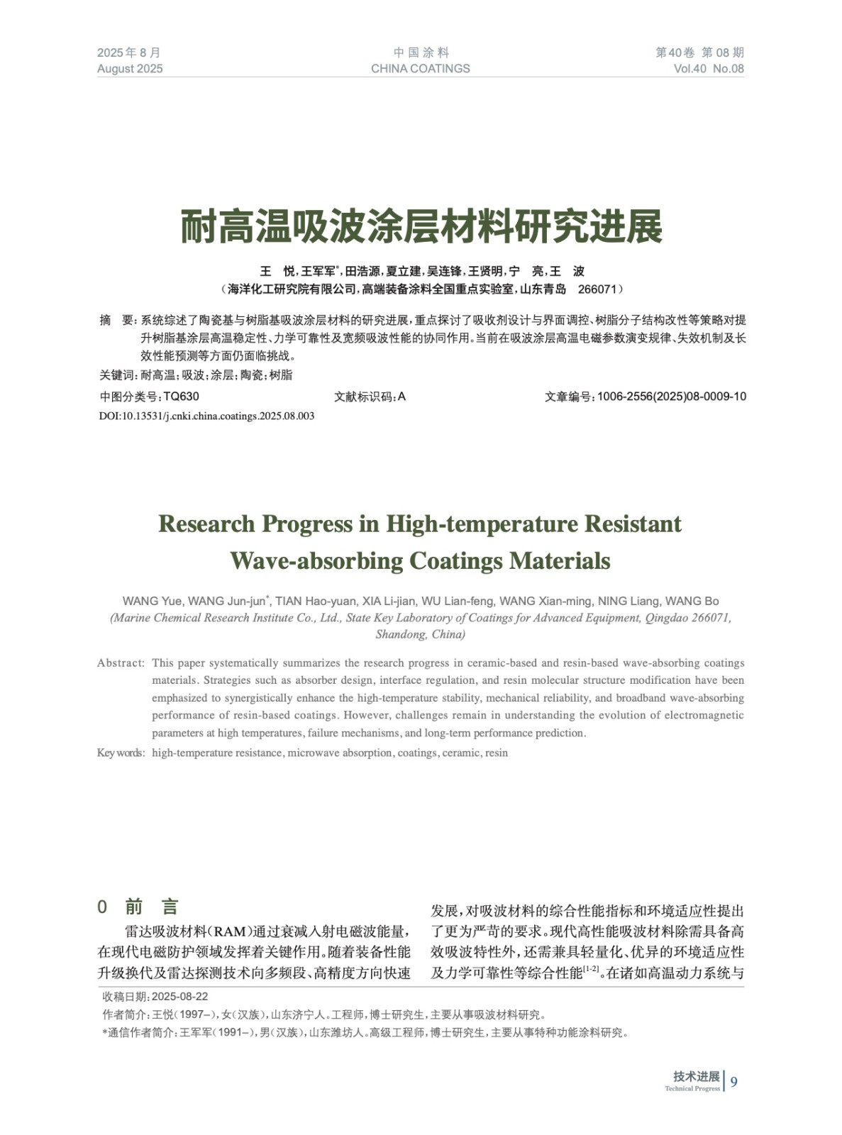 發表于2025-12-11 9:30:49| 次閱讀| 來源中國涂料| 作者王 悅,王軍軍,田浩源,夏立建,吳連鋒,王賢明,寧 亮,王 波