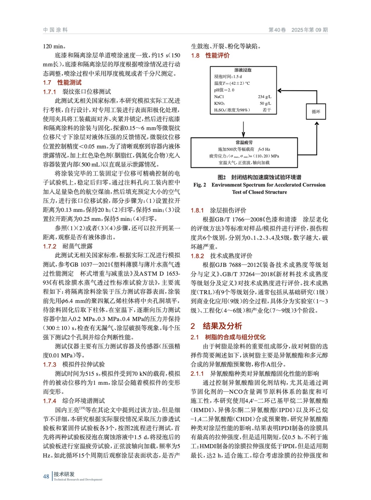 摘要:本研究主要探索聚氨酯改性隔離涂料中的固化劑與稀釋劑組分對(duì)涂層的影響規(guī)律,獲得較為優(yōu)良的固化劑與稀釋劑配方,—NCO含量1.8%(質(zhì)量分?jǐn)?shù),后同),異氰酸酯指數(shù)1.05,m(醋酸丁酯)∶m(丁酮)=1∶2,制備參數(shù)為反應(yīng)溫度90~100 ℃,反應(yīng)時(shí)間3 h。然后制備并測(cè)試涂層,主要從裂紋張口位移、耐氣體壓強(qiáng)泄露、模擬件拉伸、綜合環(huán)境加速譜試驗(yàn)4方面進(jìn)行測(cè)試,最后對(duì)性能進(jìn)行綜合評(píng)價(jià)。結(jié)果表明,只在綜合環(huán)境加速譜中(15個(gè)環(huán)境?疲勞循環(huán)后)的邊緣和2個(gè)緊固件部位有少量損傷,總體看4項(xiàng)關(guān)鍵性能良好,說明該涂層固化劑與稀釋劑的設(shè)計(jì)方案較好,可作為航空飛行器油箱隔離涂層使用。