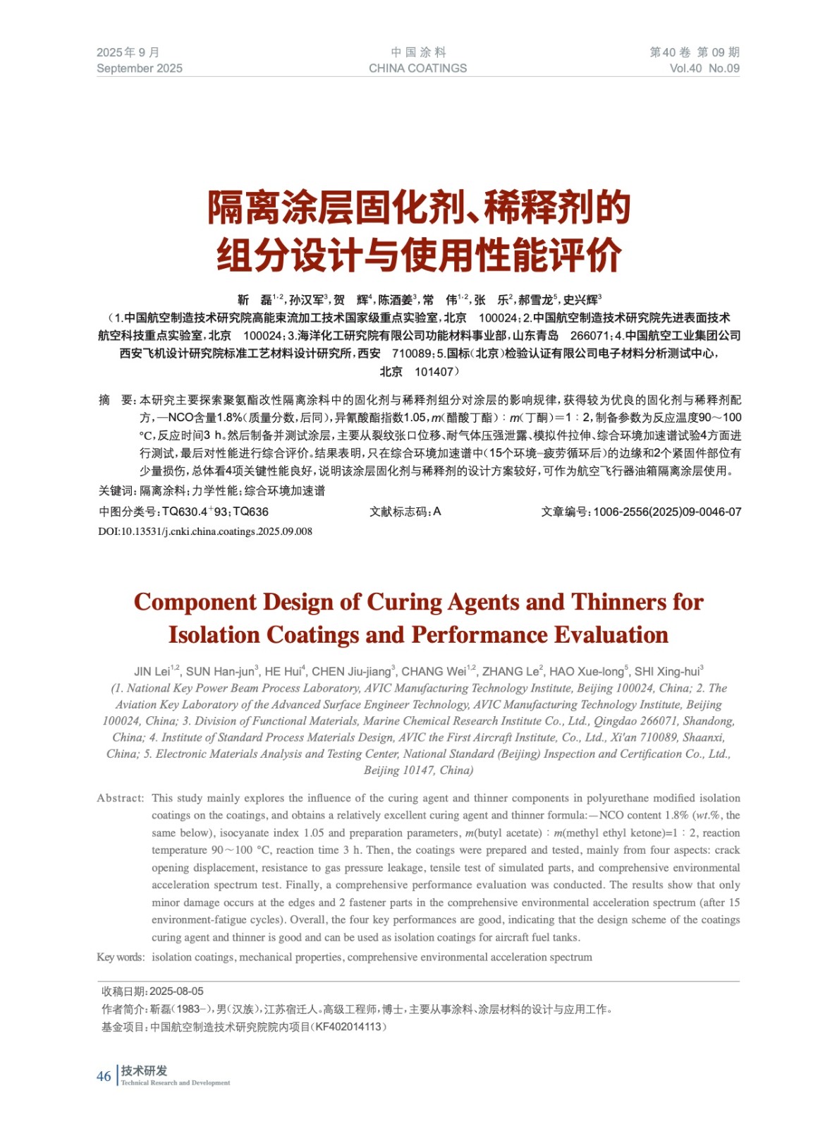 本文系作者@靳 磊,孫漢軍,賀 輝,陳酒姜,常 偉,張 樂,郝雪龍,史興輝 授權(quán)中國涂料網(wǎng)發(fā)表,并經(jīng)中國涂料網(wǎng)編輯,未經(jīng)允許不得轉(zhuǎn)載,如需轉(zhuǎn)載請(qǐng)聯(lián)系chinacoatingnet@vip.163.com