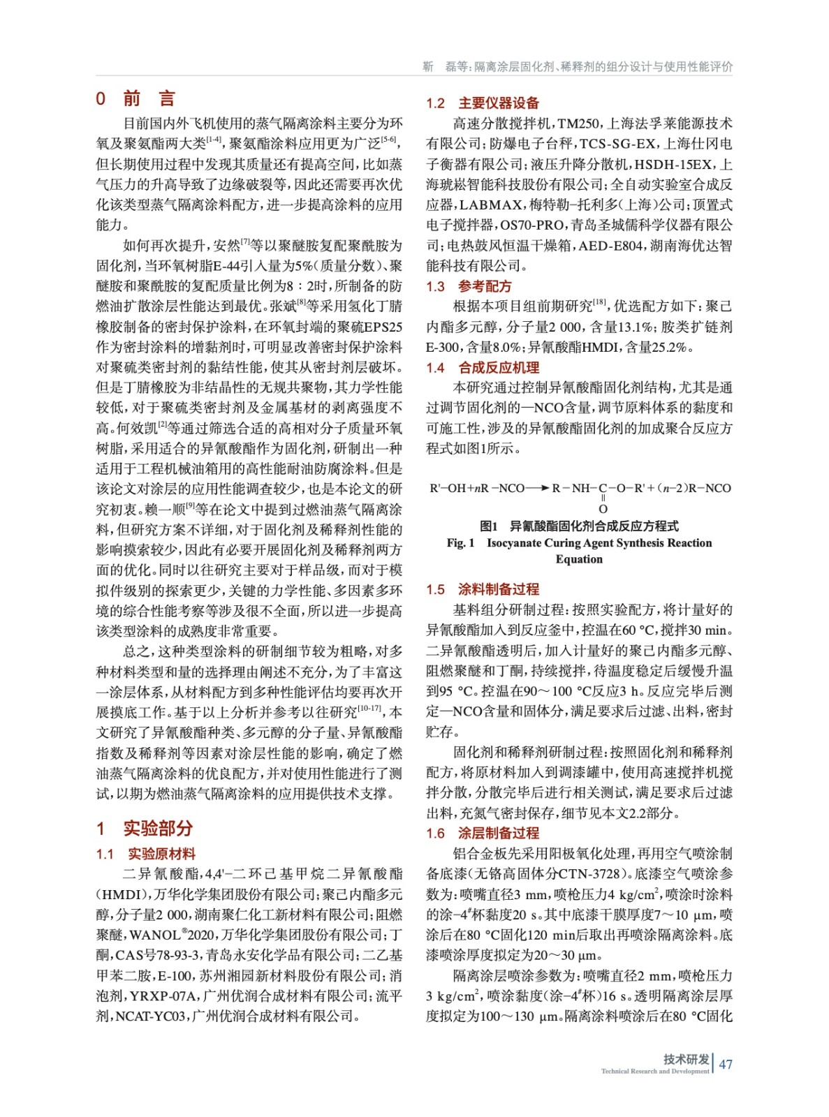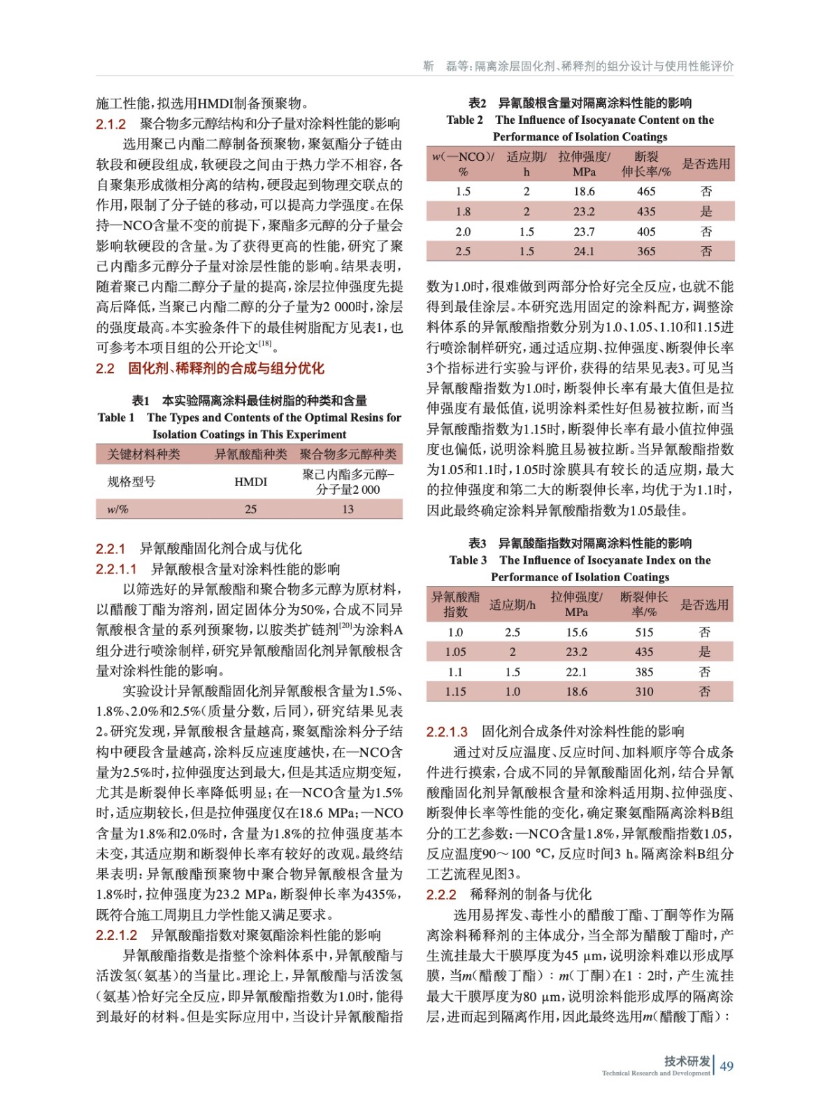隔離涂層固化劑、稀釋劑的組分設(shè)計(jì)與使用性能評(píng)價(jià)