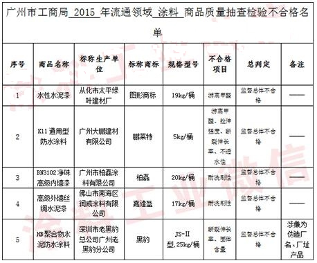 防水涂料上2016國家質(zhì)檢總局重點抽查家居產(chǎn)品榜